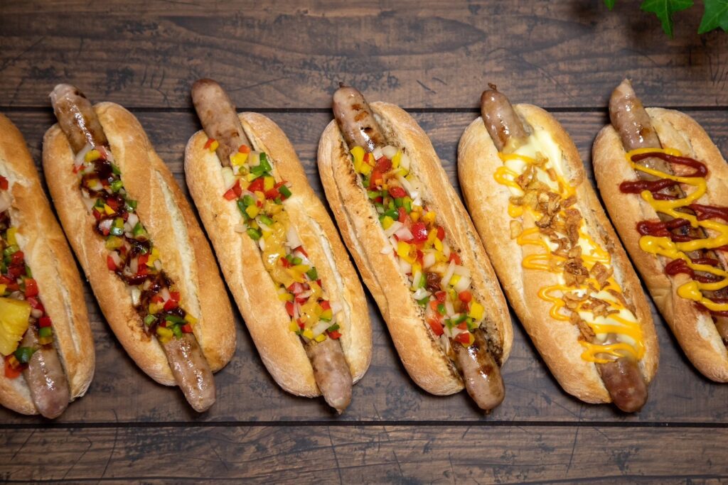 米粉を配合した外はカリッ中はフワフワのソフトフランスパンに23cmもあるソーセージはこだわりのスパイスと粗挽き肉を使用ブラジリアンソーセージを挟んで焼き上げた、ジューシーなホットドッグ。野菜を刻んだソースやクラフトホットソース、チーズなどのバリエーションをご用意しております。クラフトホットソースは、海外各地のこだわってつくられている無添加クラフトホットソースを使用しており、ホットドッグと相性抜群のものをご用意しております。ソーセージ・パン・ソース全にこだわった自慢のホットドッグになっております。